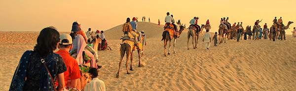 One of the best ways to explore and enjoy the vast expanse of golden hued deserts is by going for a Camel Safari. It is an adventure and fun loaded activity that lets you enjoy the beauty of arid deserts pleasurably. The bumpy camel rides beckon you to the unending horizon, sand flowing with the wind and wavy dunes forming eye-catching scenery juxtaposed by azure sky.